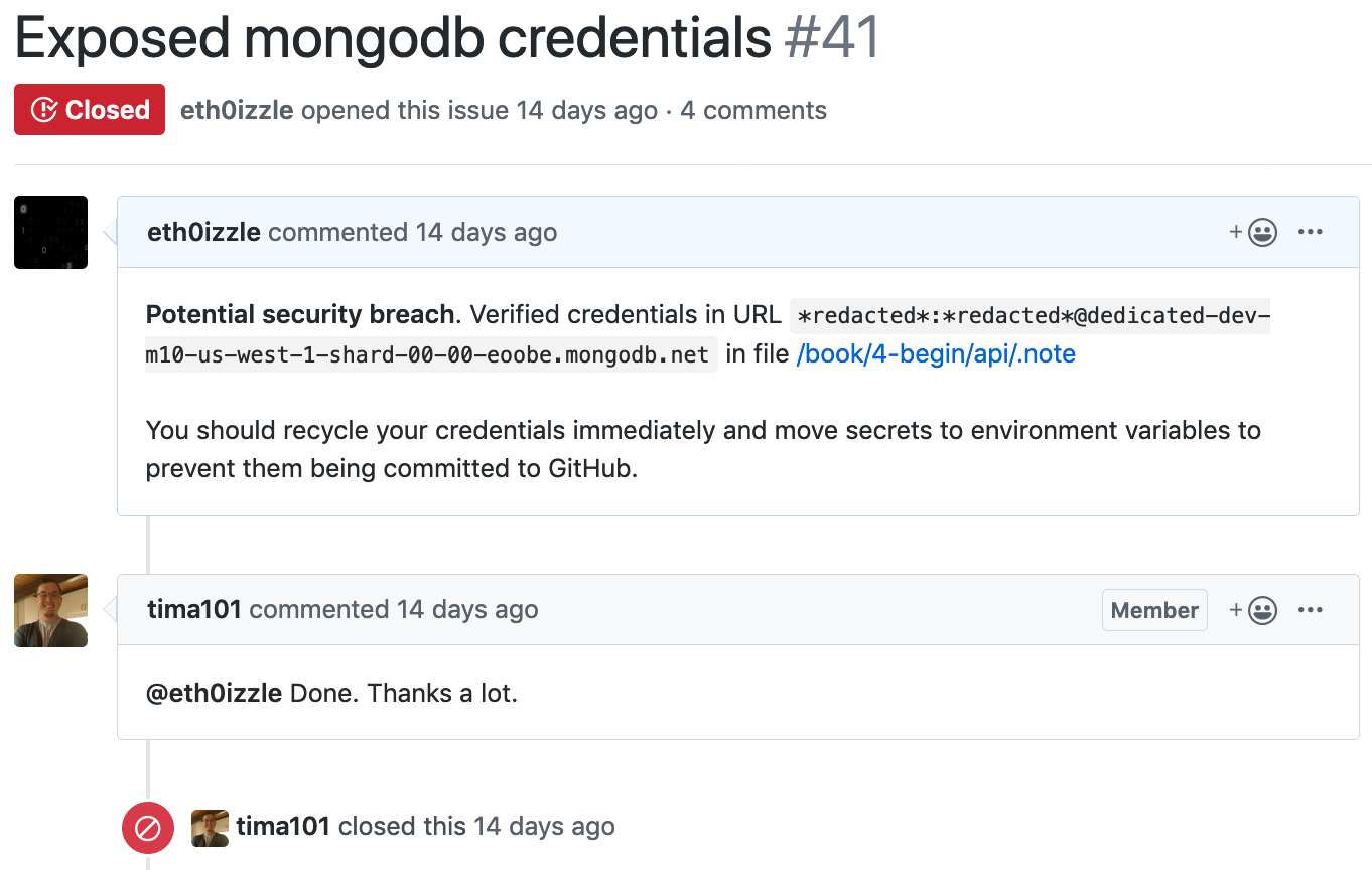 And if the connection is successful — and because we’re a Good Samaritan — we can automatically raise an issue with the code maintainers on the platform the secret was found.